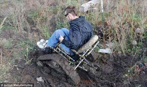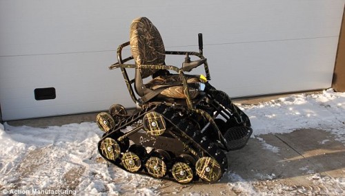 لكن ما يجعل هذا الكرسي المتحرك المختلفة هو أن لديها مسارات بدلا من العجلات، مما يعني أنه يمكن أن يذهب في أي مكان تقريبا.