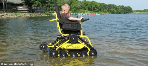 كرسي متحرك في جميع التضاريس، واستخدام المعاقين للذهاب على الطرق الوعرة، وحتى في اصطياد